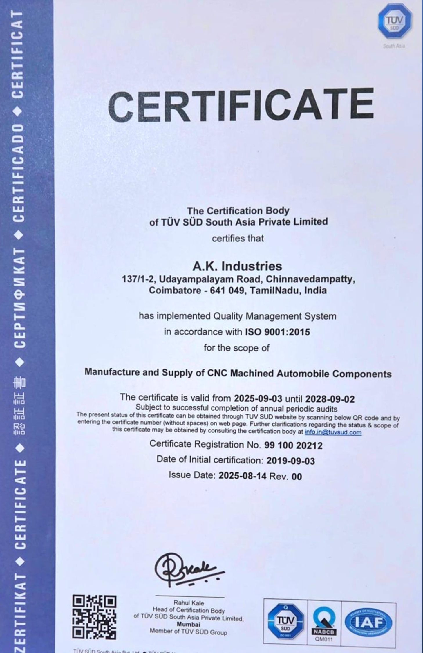 Established in 1995, A.K industries an ISO 9001-2015 certified organisation, has been providing a manufacturing facility with advanced capabilities of performing high precision, custom manufacturing and production component manufacturing work, while offering the latest in machining and fabricating techniques clubbed with highest level of quality and customer satisfaction.